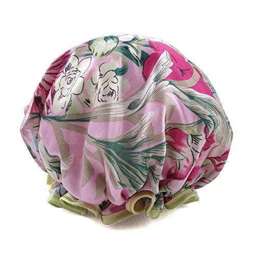 - Practical and Comfortable: Shower cap reusable,it\'s made of PEVA soft satin,comfortable touching feeling, double layers,waterproof, effectively keep your hair dry while you shower