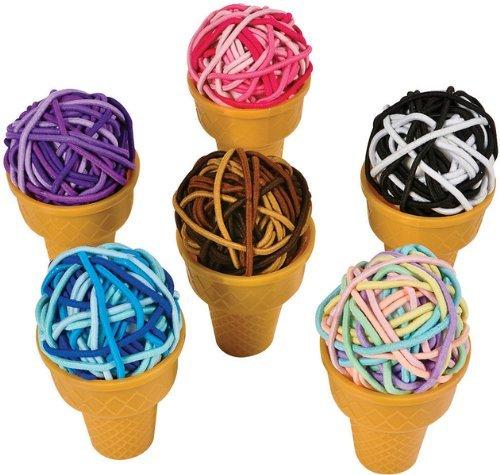 This item is sold by cases of: [12] items.36 Piece Hair Ring Ice Cream Cone. A sweet fashion accessory. 36 elastic hair rings sit in a ball in a plastic ice cream cone replica.