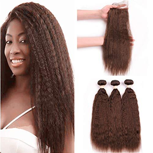 - 2)Texture:Kinky Straight Brown Hair Bundles with Closure,Coarse Yaki Hair Weaves