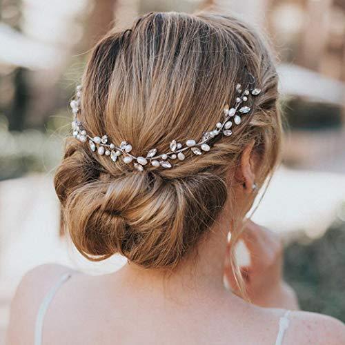 COSYDAYS Pearl Bride Wedding Hair Vine Silver Crystal Bridal Hair Piece Rhinestone Bride Hair Accessories for Women and Girls