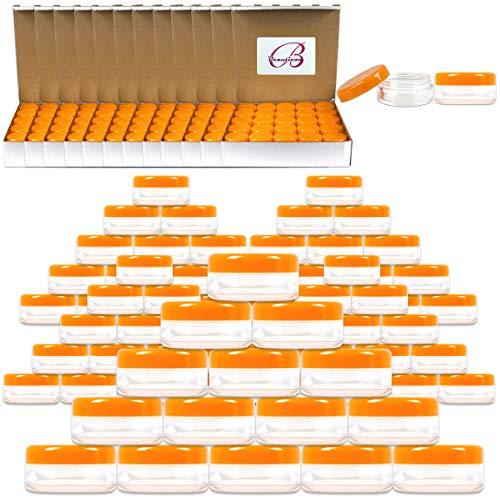 High Quality 5G/5ML ORANGE Lid Container Jars Reusable Acrylic Jars to Store Creams, Lotions, Make Up, Cosmetics, Lip Balm, Lip Gloss, Scrubs, Salves, Nail Accessories, Charms, Beads, Small Jewelry and More Can Be Used For Mixing or Sampling Beauty or Health Products Great for Professional or Personal Use Lightweight and Compact for Easy Travel Use